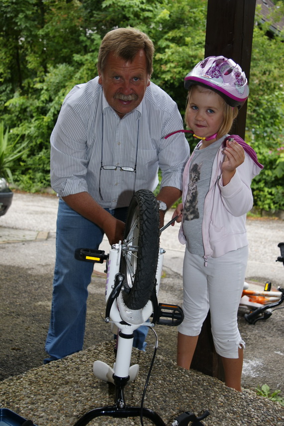 Eine dringend notwendige Fahrradreparatur stand am Nachmittag auf dem Programm. Enkerl Sophie hatte einen Patschen bei ihrem Rad. Danach durften Lena und Sophie mit dem Pferdewagen eine Seerunde mitfahren.