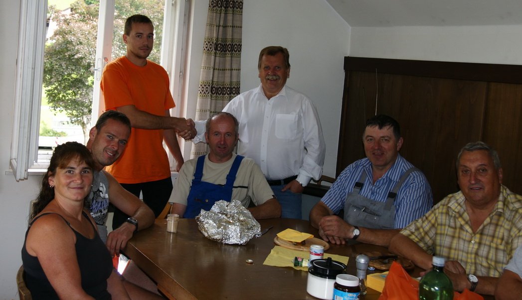 Unser neuer Mitarbeiter Norbert Esletzbichler lud seine Kollegen zum Einstand auf eine zünftige Jause ein. Die Bauhofmitarbeiter ließen sich die Stelzen gut schmecken.